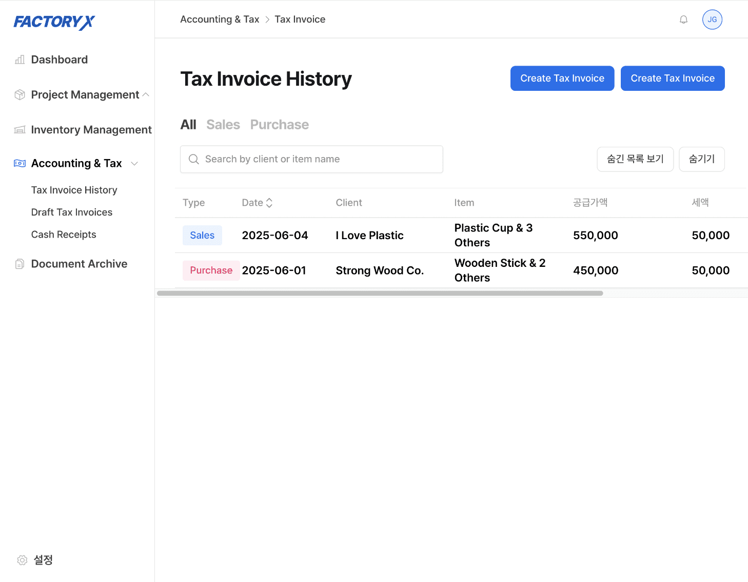 Issue tax invoices and cash receipts seamlessly, manage all records in one view, and eliminate repetitive work.