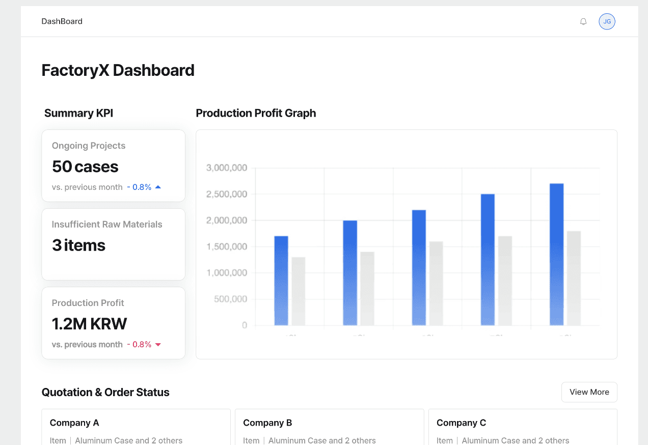 From material input to final output, track every stage of your production process on a single dashboard and gain full visibility of your factory operations.